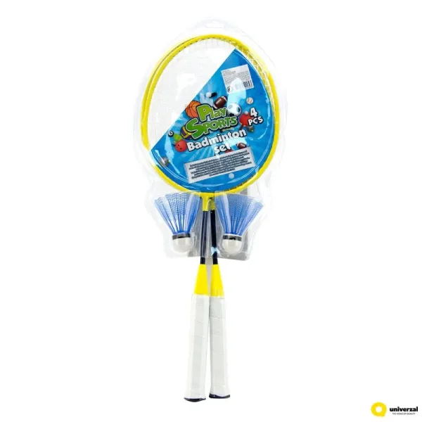 Set uključuje dva čelična reketa sa obojenim drškama i čvrstim kanapom i 2 loptice za badminton.